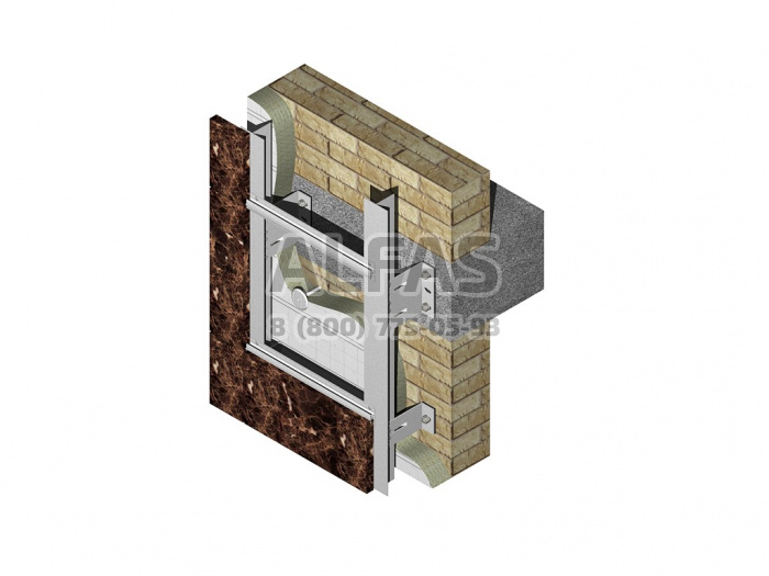Вариант Econom. Экономичный вариант навесных вентфасадов. Кронштейны крепятся в несущие стены зданий.